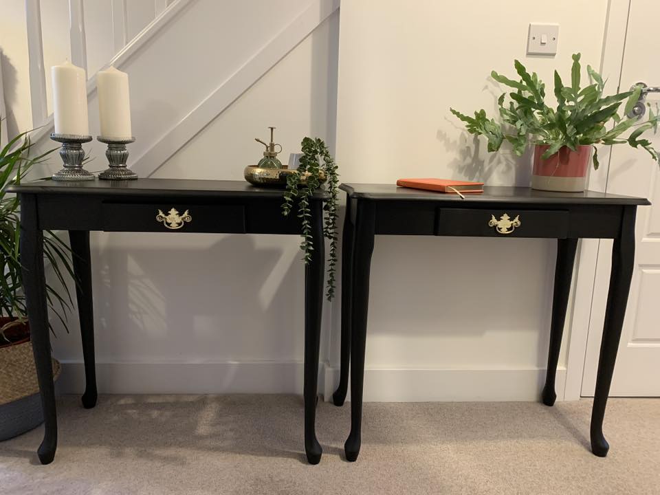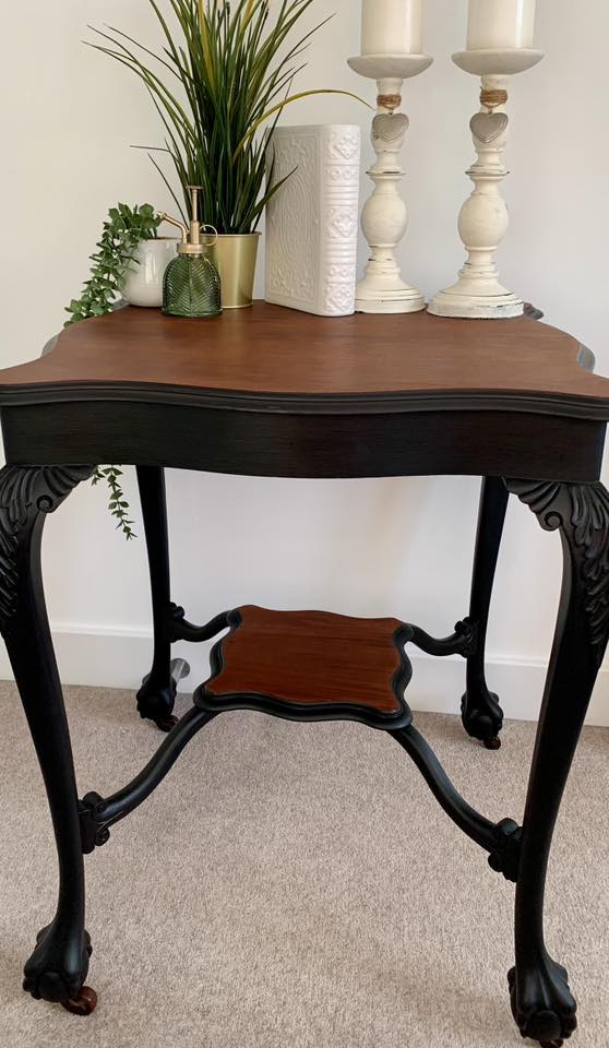 Hand painted claw foot table, sanded back and oiled tops with matt black legs and surrounds.